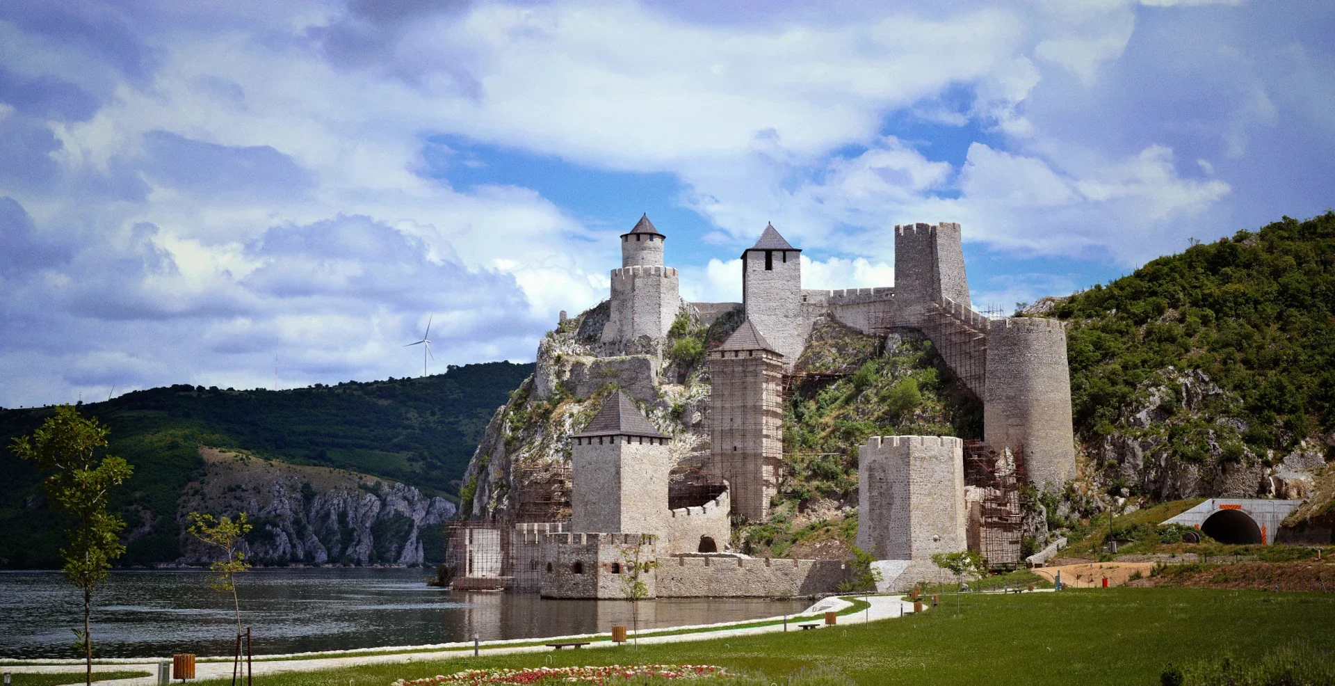 • Iron Gates-Scenic Cruising – The Iron Gates-SCENIC CRUISING THROUGH THE IRON GATES. Visit Golubac Fortress – a medieval fortified town on the south side of the Danube River – before cruising through the Iron Gates. The Iron Gates is one of Europe’s most awe-inspiring natural wonders. The Danube narrows as it winds through a series of magnificent gorges between the Carpathian and Balkan mountains, forming a natural border between Serbia and Romania. The ancient King Decebalus, the last king of Dacia, is proudly carved into the mountainside and always captivates travelers. (B,L,D)